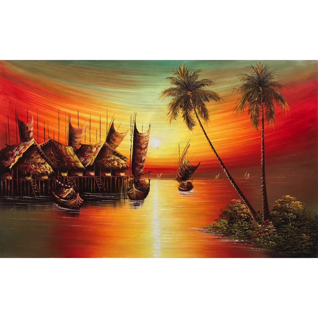 Wall decor decoration lukisan kaligrafi besar pemandangan pantai senja, rp199900 lukisan pemandangan pantai waktu senja. Lukisan panen padi jpg foto pemandangan waktu senja di pantai berikut diambil daripada sumber berikut :